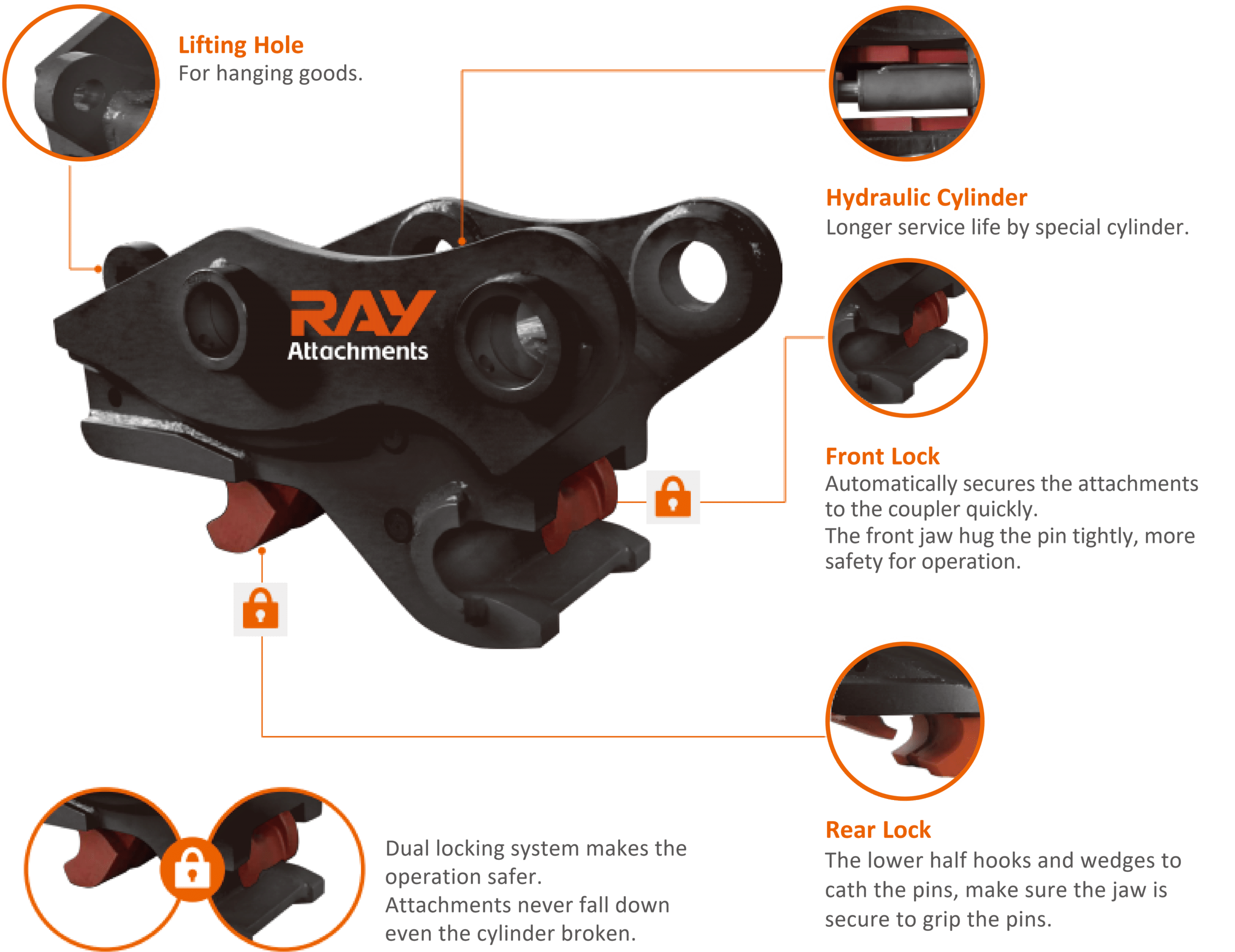 تعتبر وصلات الربط السريع المتعددة RQH01M وRQH01D وRQH02M وRQH02D وRQH04M وRQH04D وRQH06M وRQH06D وRQH08M وRQH08D وRQH10M وصلات ربط سريعة عالية الكفاءة للحفارات مصممة لتمكين التوصيل والفصل السريع والآمن لمختلف المرفقات.