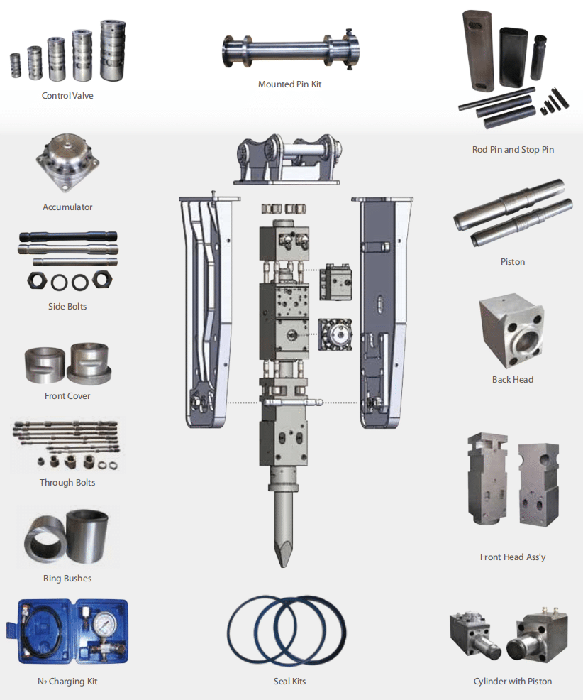 - Main Body: Including Front head, cylinder, and back head. Ensure your breaker will be in the best performance