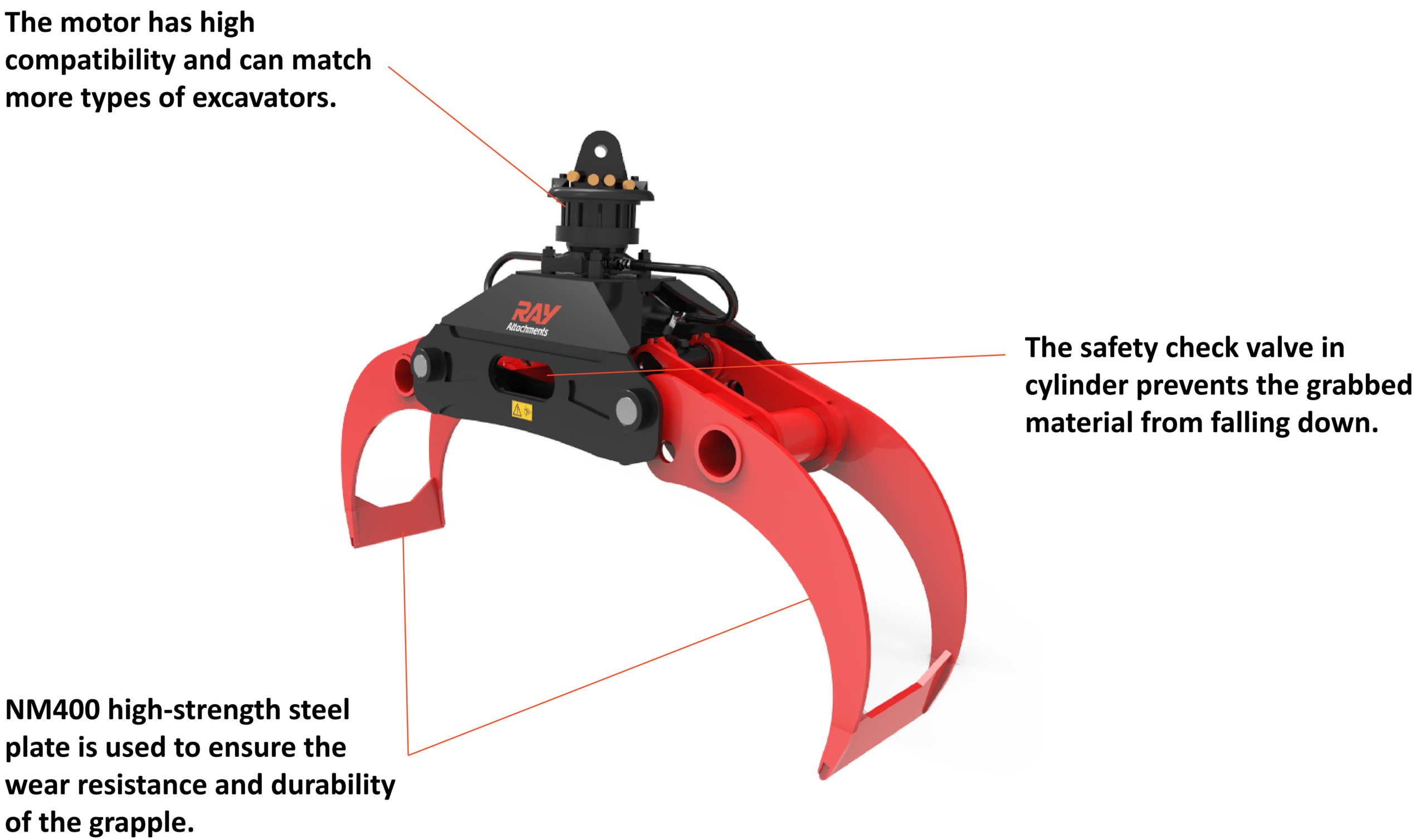 1. Se utiliza una placa de acero de alta resistencia NM400 para garantizar la resistencia al desgaste y la durabilidad de la pinza.