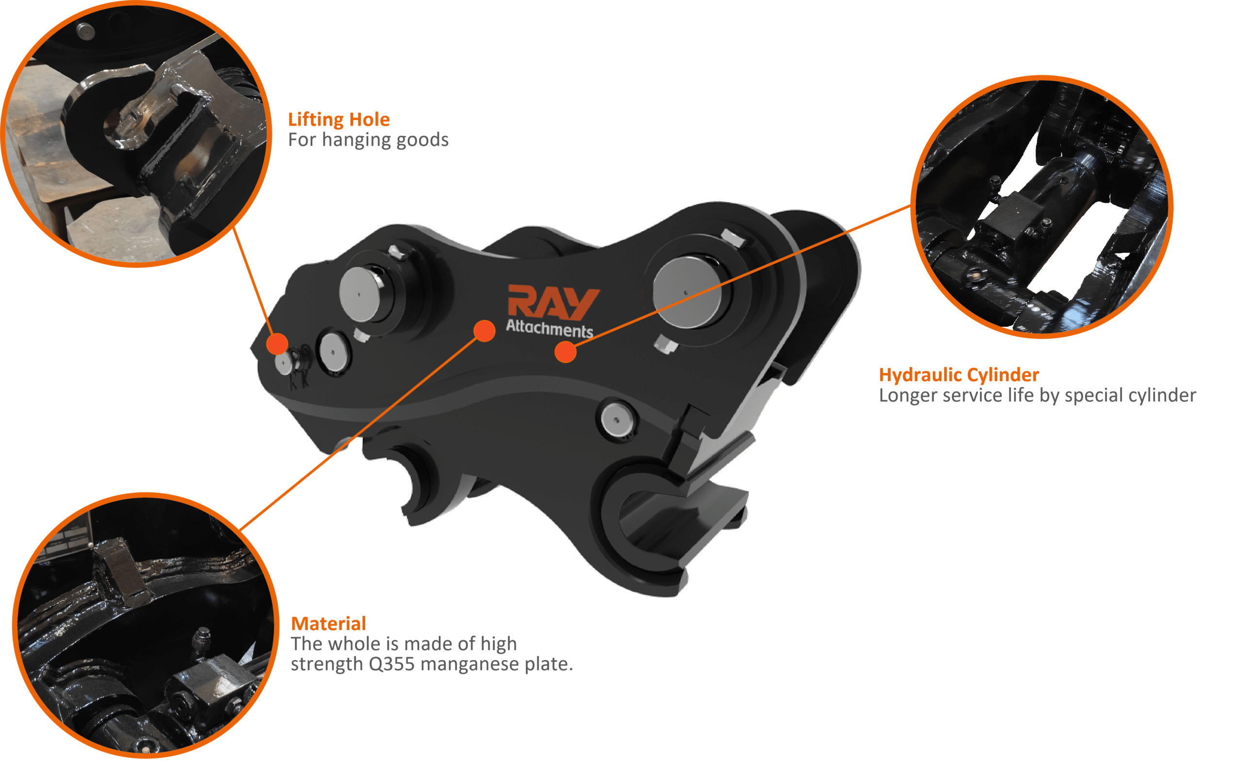 Il modello RQH – MINI è progettato per macchinari con un tonnellaggio inferiore o uguale a 4 tonnellate. Offre un aggancio e sgancio fluido di vari accessori, migliorando l'efficienza del lavoro nelle operazioni su piccola scala.